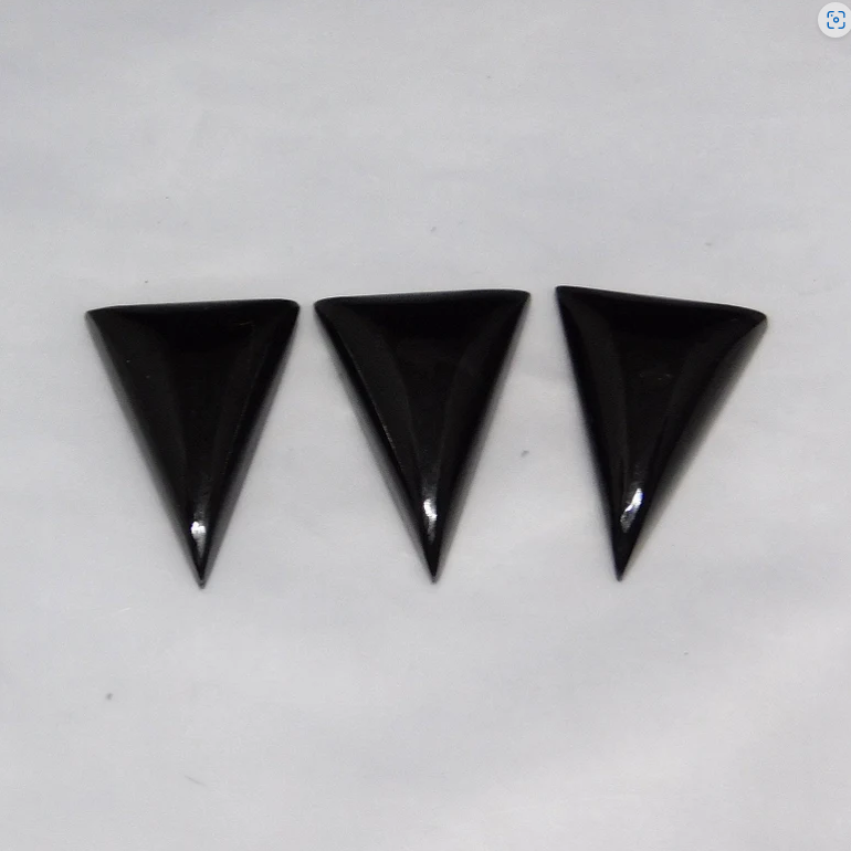 พลอยโมราสีดำธรรมชาติทรงสามเหลี่ยมยาวเรียบขนาด3x6มม. สำหรับเครื่องประดับที่สวยงามทำแหวนสร้อยคอมีให้เลือกทุกขนาด