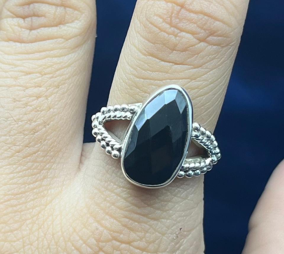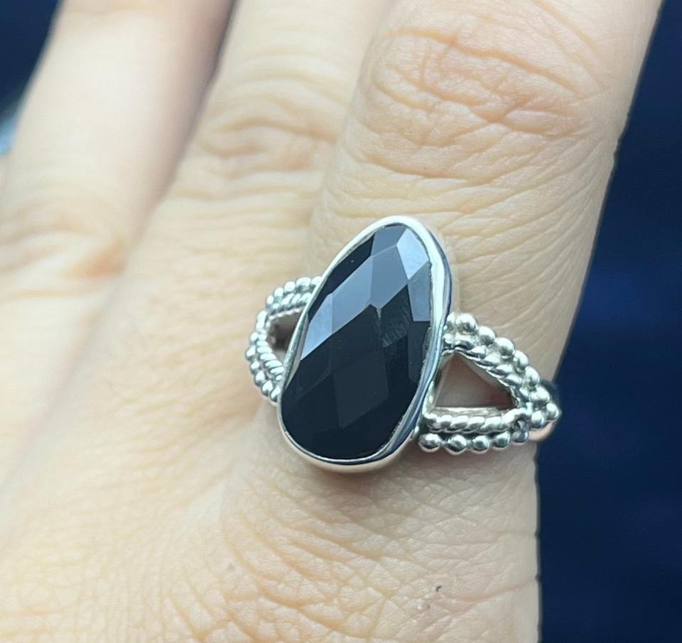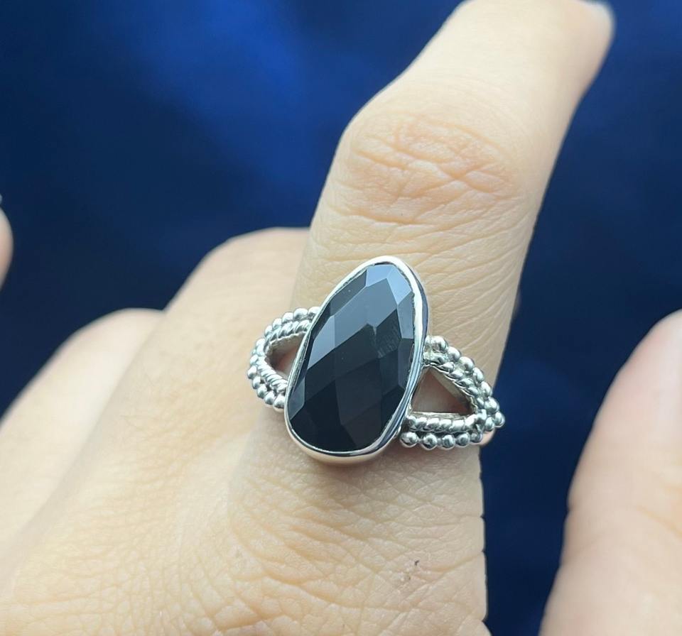 แหวนเงินแท้ประดับพลอยออนิกซ์สีดำธรรมชาติ ดีไซน์โบฮีเมียน ฝังแบบ Bezel Setting เหมาะสำหรับทั้งชายและหญิง ใช้เป็นของขวัญสำหรับงานแต่งงานและงานปาร์ตี้