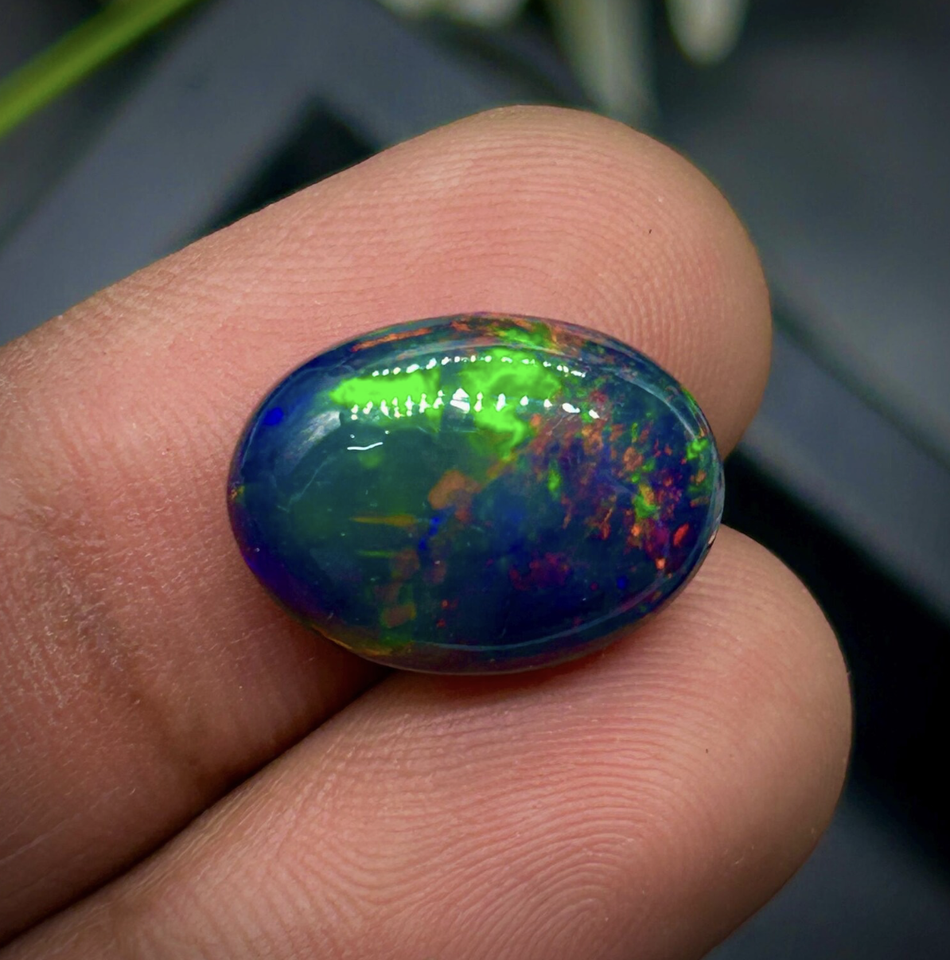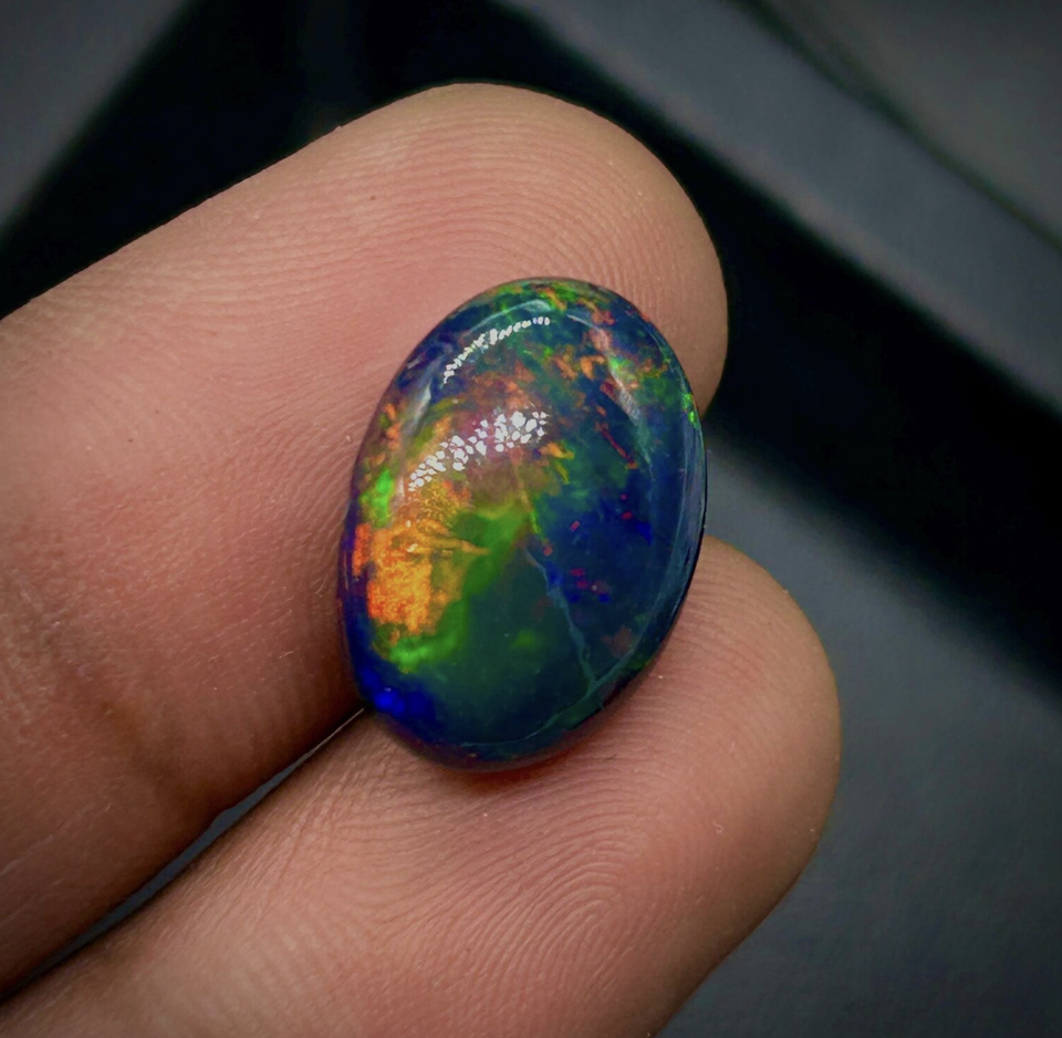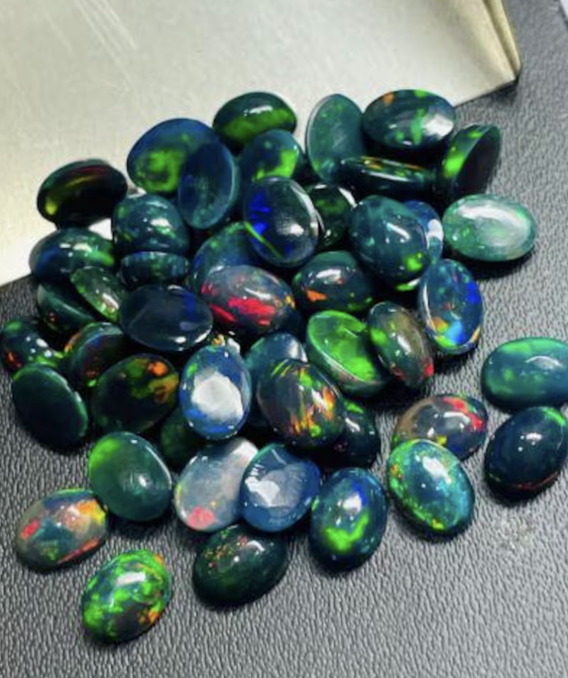 โอปอลสีดำธรรมชาติทรงรี พลอยหลวมแบบหลายสี สำหรับทำเครื่องประดับ ราคาขายส่ง 1 กะรัต ถึง 15 กะรัต