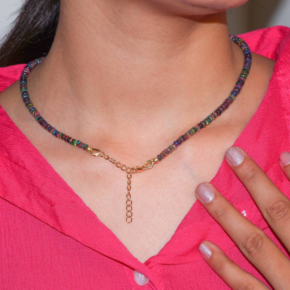 สร้อยคอเงินแท้ 925 ประดับโอปอลสีดำธรรมชาติสำหรับผู้หญิง ขนาด 18 นิ้ว ของขวัญเครื่องประดับสำหรับงานแต่งงานหรือวันเกิดสำหรับเธอ