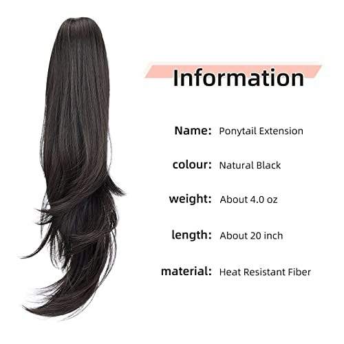 ผมต่อหางม้าสีดำธรรมชาติ 20 นิ้ว เส้นใยทนความร้อน แบบหนีบ สำหรับผู้หญิง ผมตรงยาว
