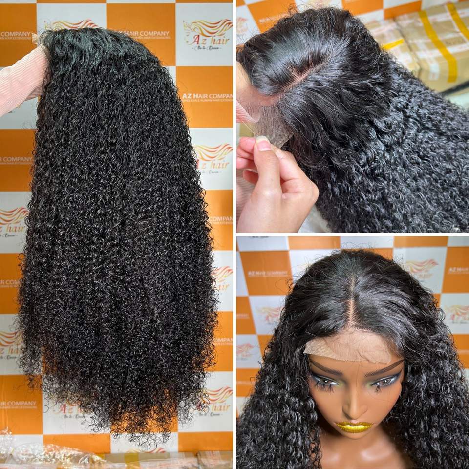 วิกผมธรรมชาติสีดำ prepluck HD ลูกไม้ด้านหน้าผมชาวพม่าผมหยิก100% เวียดนามดิบยาวเต็ม