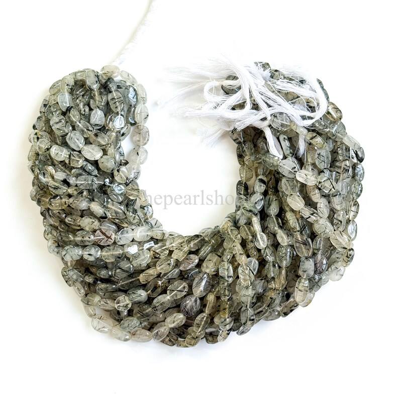 ลูกปัดควอตซ์รูทิเลตสีดำธรรมชาติ รูปไข่เรียบ 7x10 มม. ลูกปัดพลอยรูทิลสีดำสำหรับทำเครื่องประดับ งานฝีมือ ราคาขายส่ง