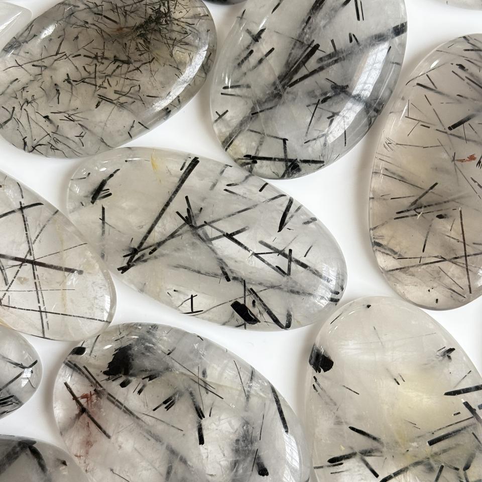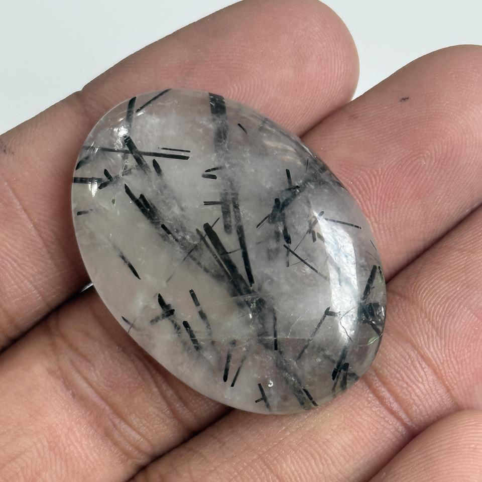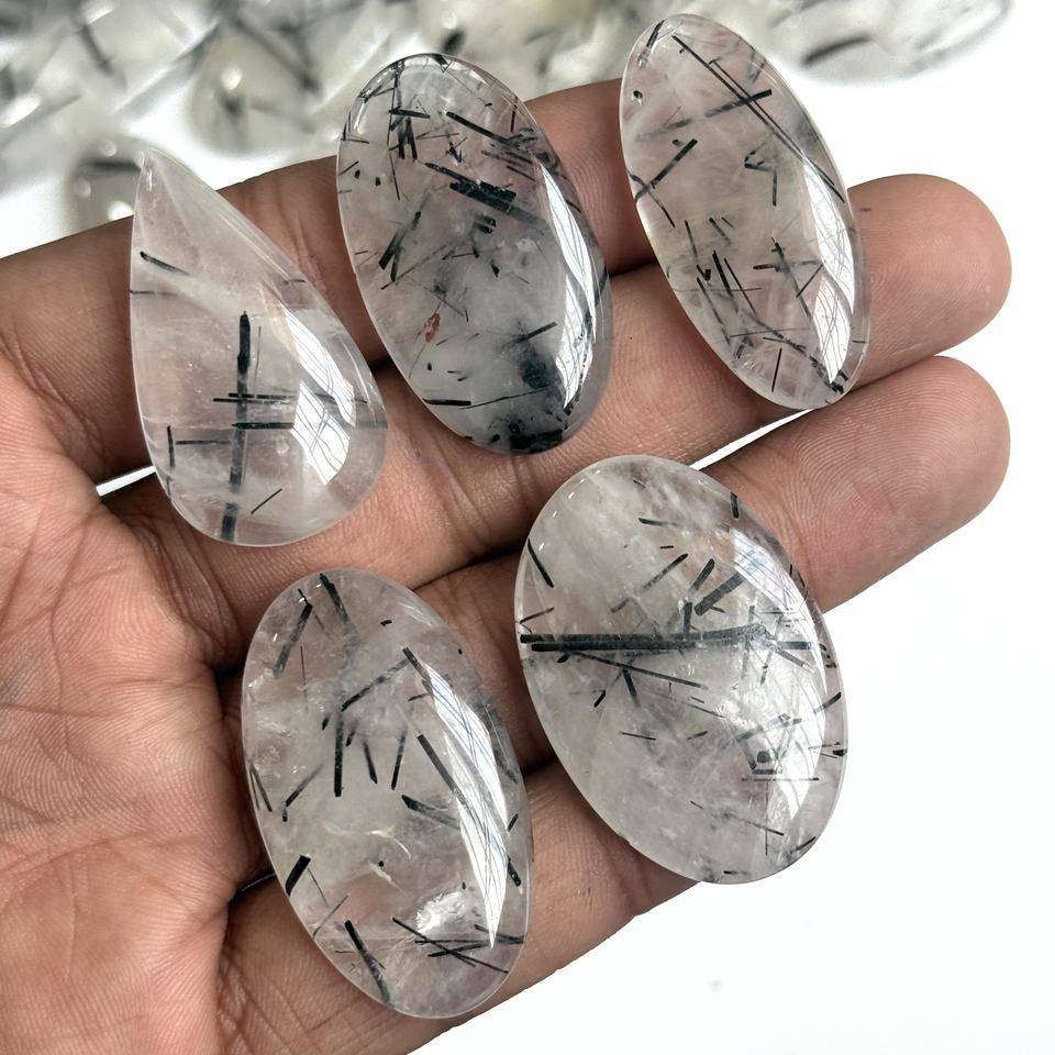 ควอตซ์รูทิเลเต็ดสีดำธรรมชาติ ทรงคาโบชอง ขัดเงา รูปไข่ คุณภาพสูง สำหรับทำเครื่องประดับ แหวน