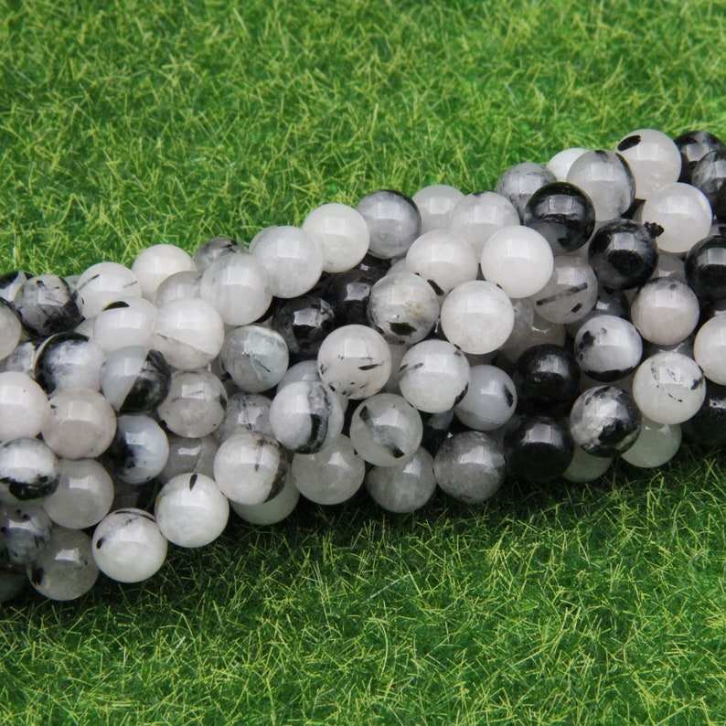 Natural Black Rutilated Quartz Round Beads Smooth Gemstone Loose Beads For Jewelry Making Wholesale Bulk Supply
