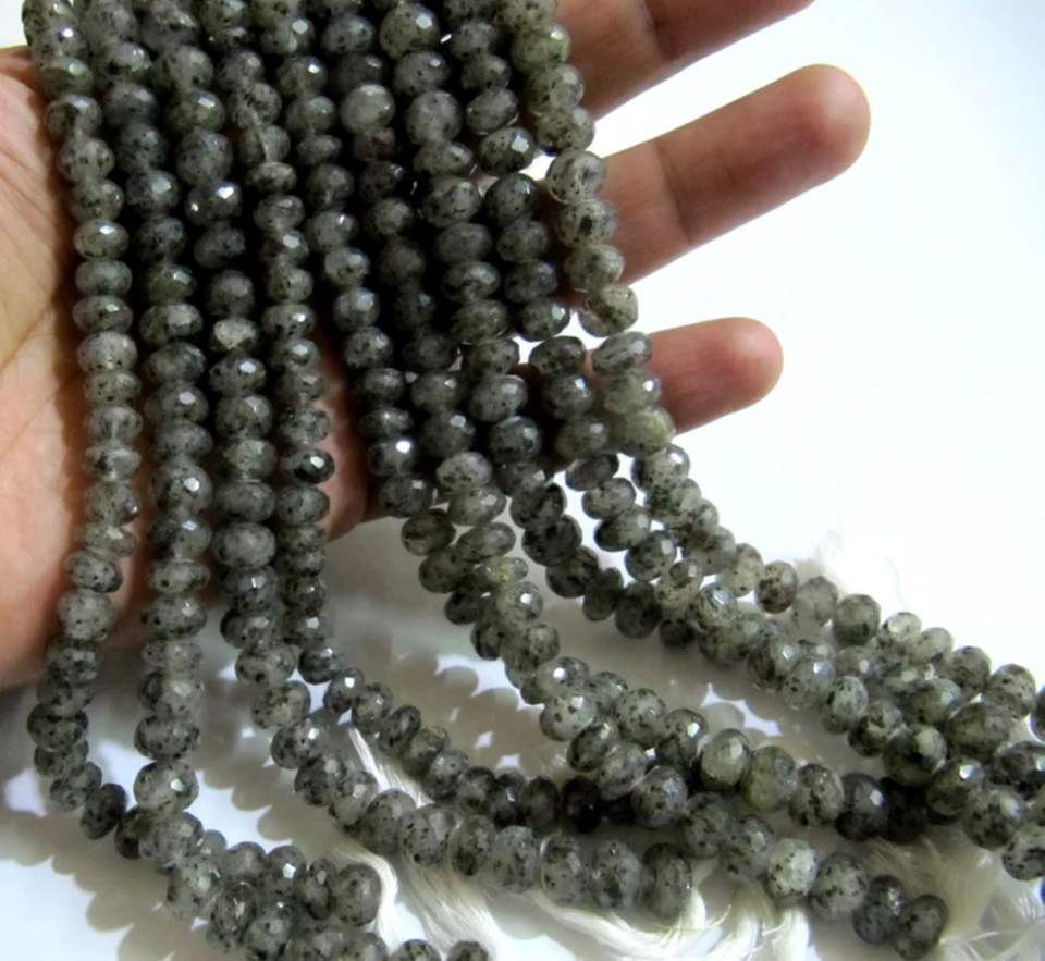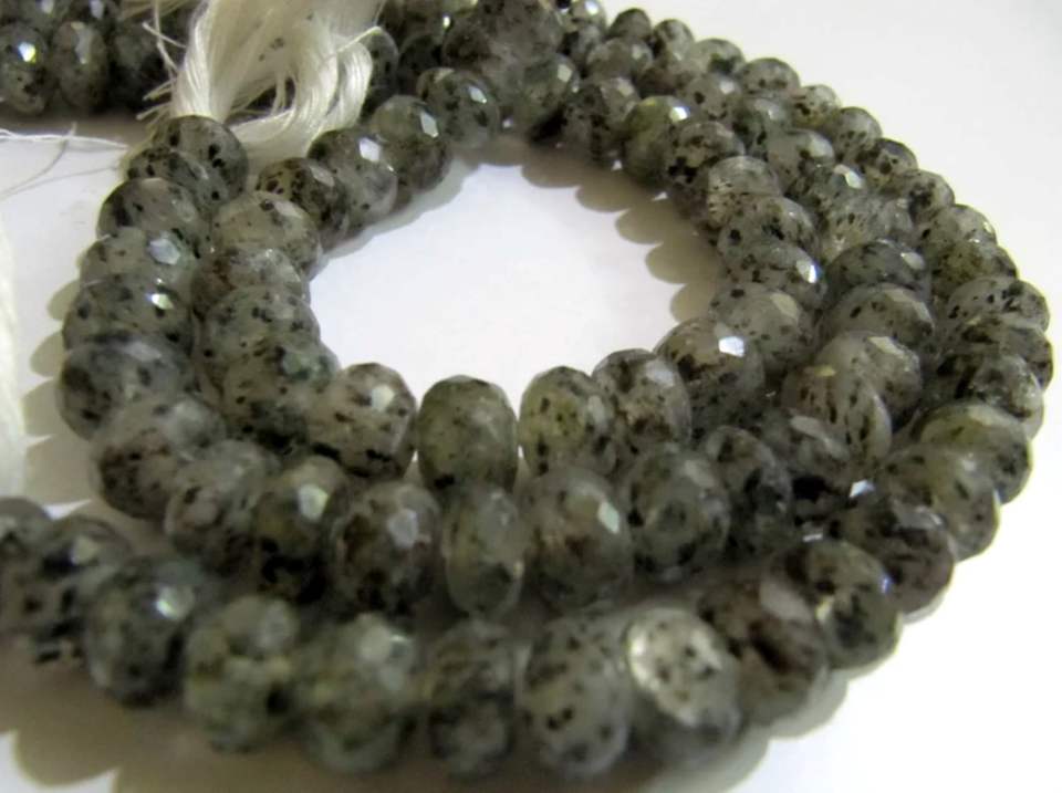 ลูกปัดแร่พลอยสีดำธรรมชาติลายจุดควอตซ์เจียระไนคุณภาพสูงขนาด7ถึง10มม. ลูกปัดเส้นยาว10นิ้วทำเครื่องประดับอัญมณี