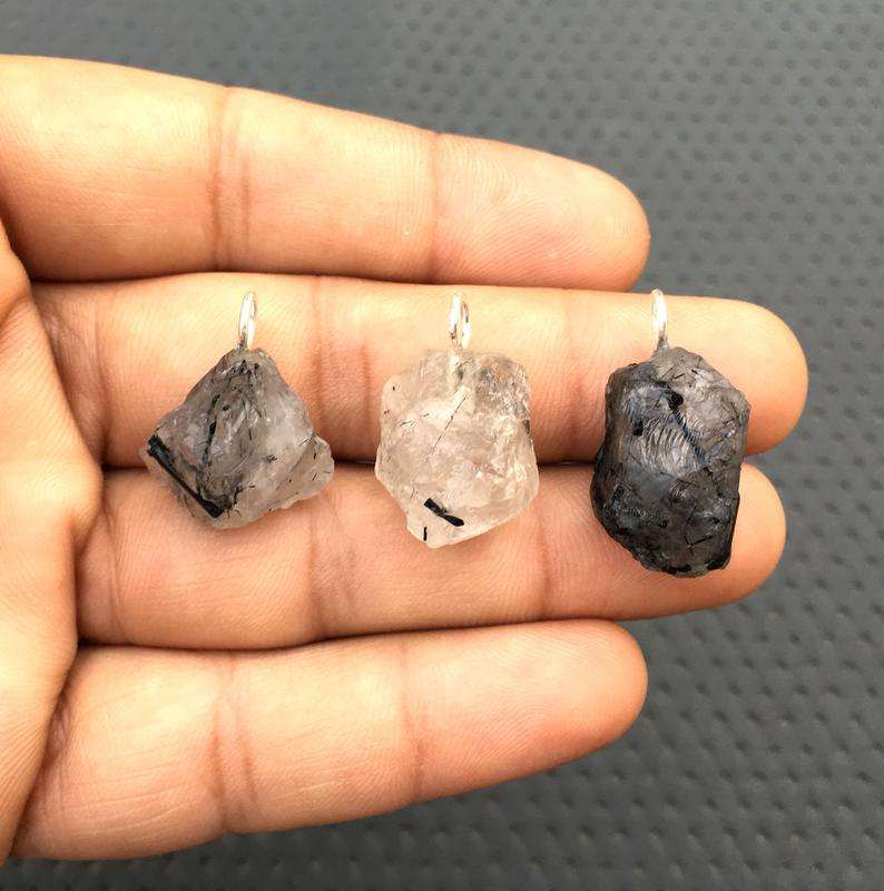 พลอยทับทิมธรรมชาติสีดำ92.5เงินสเตอร์ลิง3ชิ้นจี้สเน่ห์หยาบเครื่องประดับทำมือคุณภาพสูง