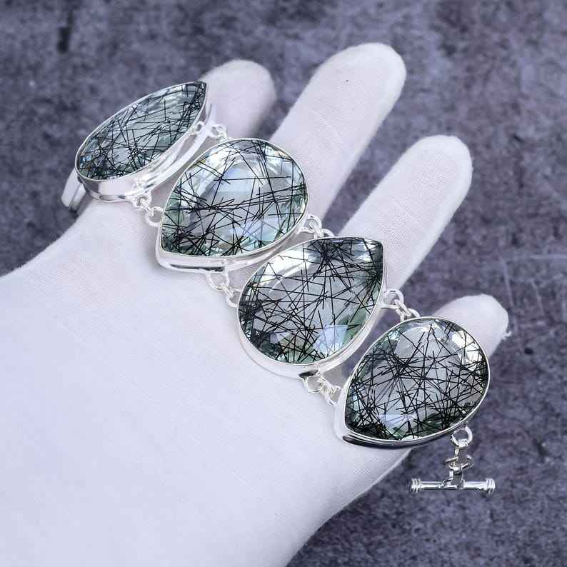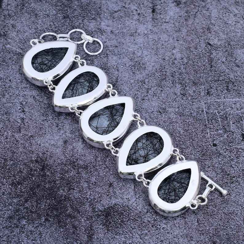 925พลอยทับทิมสีดำธรรมชาติเงินสเตอลิงโรเดียมเครื่องประดับทำด้วยมือสร้อยข้อมือปรับแต่งได้สำหรับผู้หญิง
