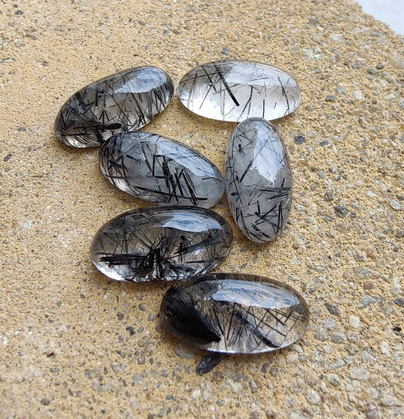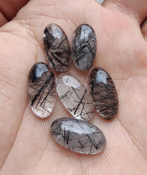 พลอยทับทิมสีดำธรรมชาติทรงรียาวทรงวงรีทรงโดมด้านหนึ่งสำหรับทำเครื่องประดับทำกำไลข้อมือพลอย April สำหรับผู้ชายและผู้หญิง