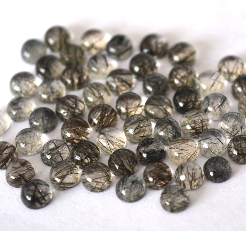 ควอตซ์รูไทล์สีดำธรรมชาติทรงหลวม4มม. สีดำรูไทล์
