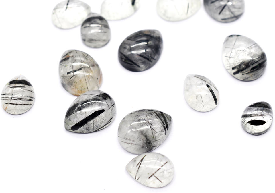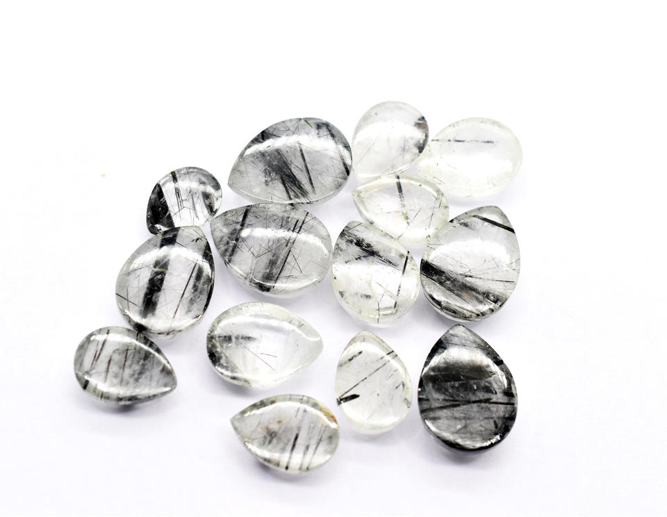 พลอยกุหลาบแร่ควอตซ์พลอยสีดำธรรมชาติทรงหลังเบี้ยผสมขนาดและรูปร่างการรักษาจำนวนมากสำหรับสร้อยคอคริสตัลขายจำนวนมาก