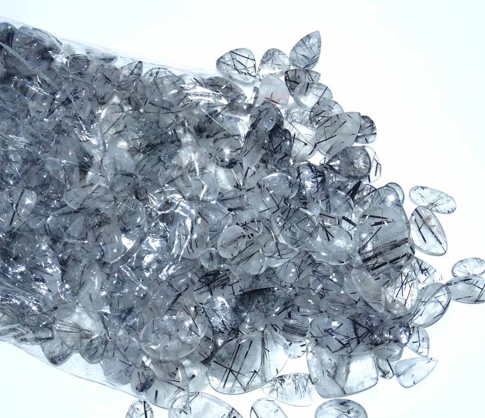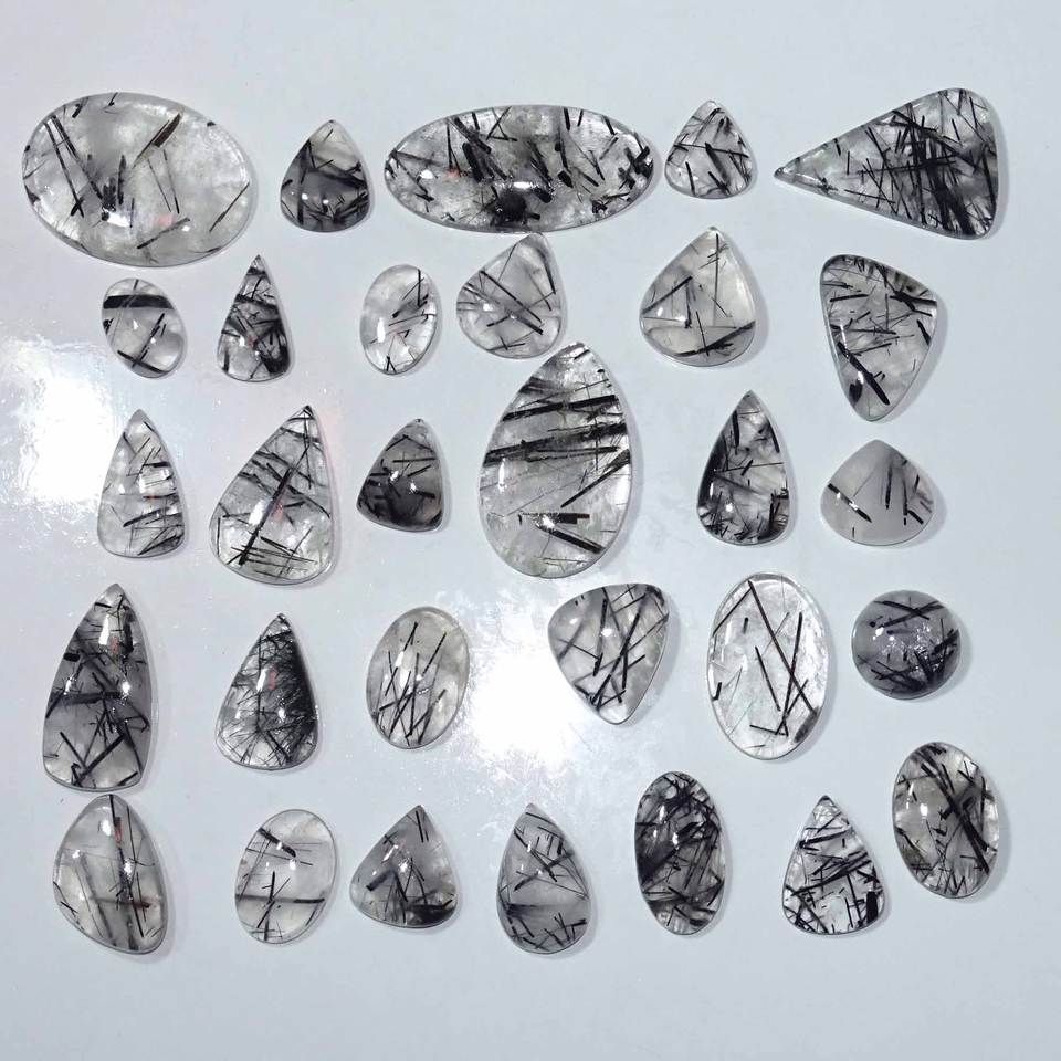 ธรรมชาติสีดํา Rutile ควอตซ์อัญมณีหลวม cabochon ผสมขนาดและรูปร่างจํานวนมากคริสตัล Cabochon สําหรับขายคริสตัลธรรมชาติ