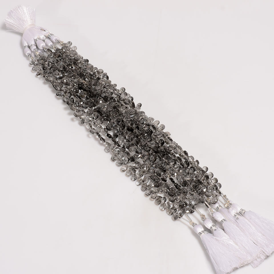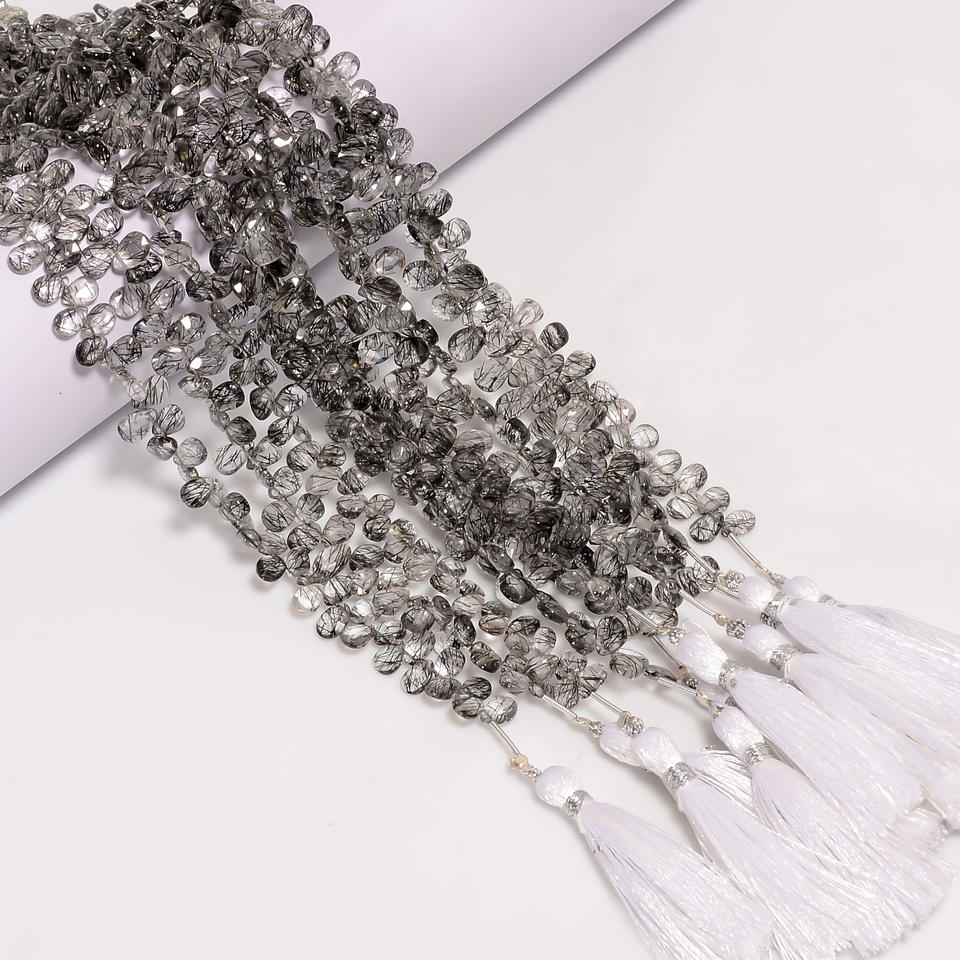 ลูกปัดควอทซ์ลูกแพร์แร่ทับทิมสีดำธรรมชาติสีดำพลอยควอตซ์ลูกปัดเหลี่ยมเพชรพลอยสำหรับทำลูกปัดอัญมณีขนาด8นิ้ว