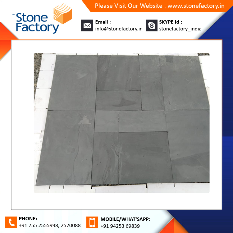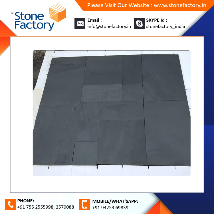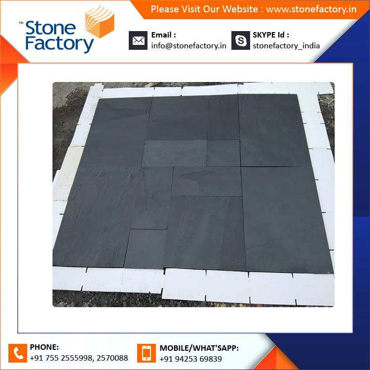 กระเบื้องลานหินชนวนหินทรายสีดำธรรมชาติใช้ภายในและกลางแจ้ง