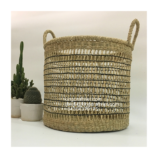 Natural Black Seagrass Basket with Handles Household Items Laundry Basket Storage Basket Made by Vietnamese