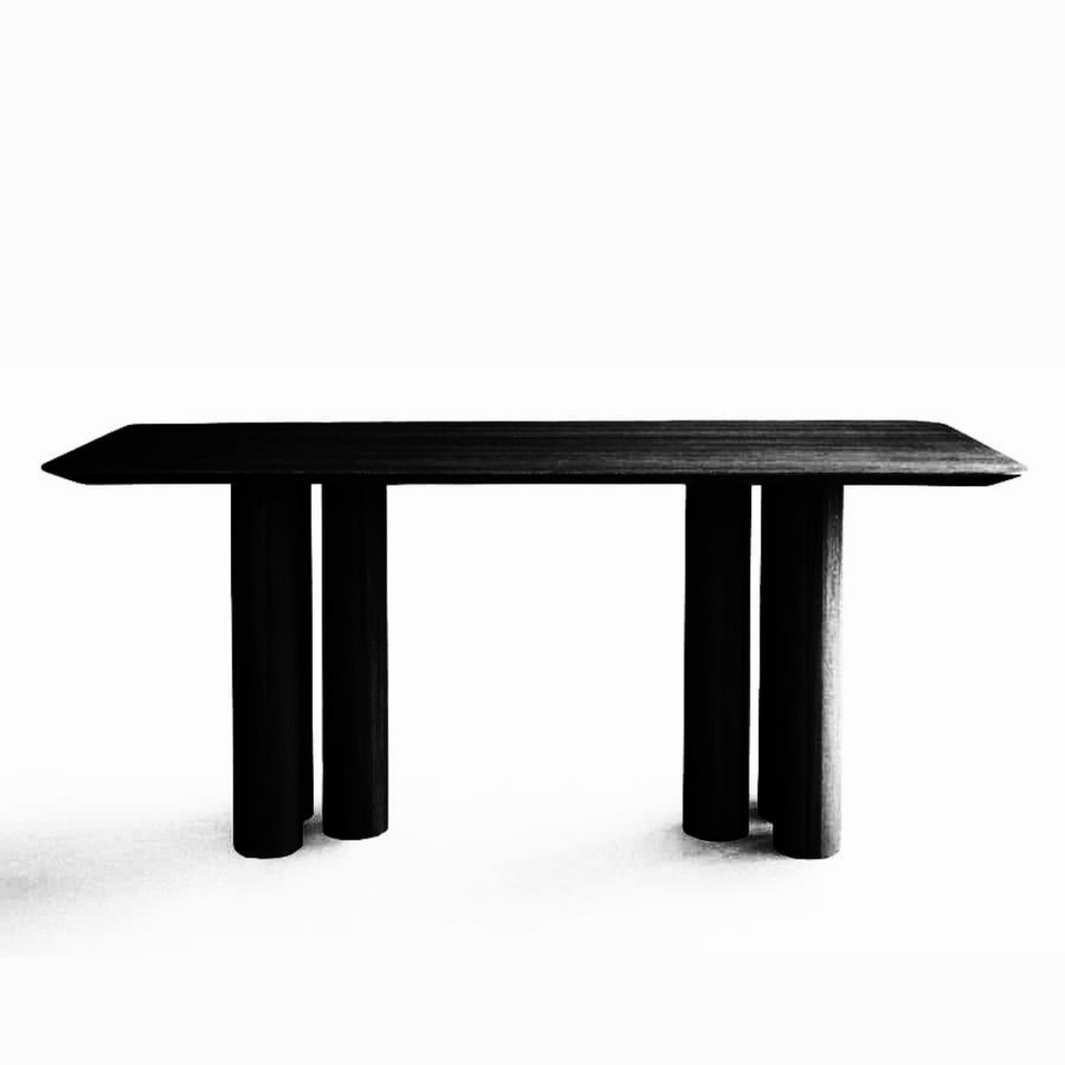 โต๊ะทานอาหารไม้แท้สีดำธรรมชาติขาทรงกระบอกเฟอร์นิเจอร์ร้านอาหารเรียบง่ายทันสมัยสำหรับห้องนั่งเล่นเป็นมิตรกับสิ่งแวดล้อม