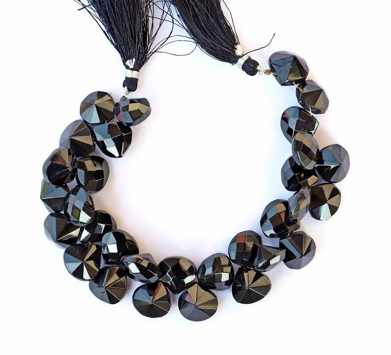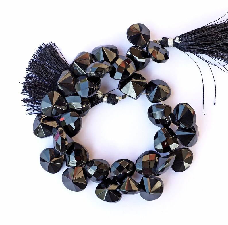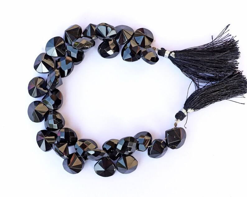 ลูกปัดหัวใจเว้าเหลี่ยมเพชรพลอยสปิเนลสีดำธรรมชาติ ร้อยเป็นเส้น สำหรับทำเครื่องประดับ ขายส่ง