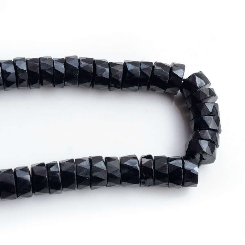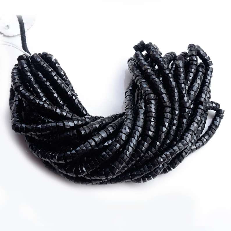 ลูกปัดพลอยสปิเนลสีดำธรรมชาติทรงเหลี่ยมแบบรอนเดลล์สำหรับทำเครื่องประดับแบบร้อยเป็นเส้น