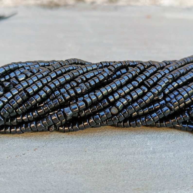 ลูกปัดสปินเนลสีดำธรรมชาติเส้นใยลูกปัด heishi เส้นขอบยาง4-7มม. สำหรับทำสร้อยข้อมืออัญมณี