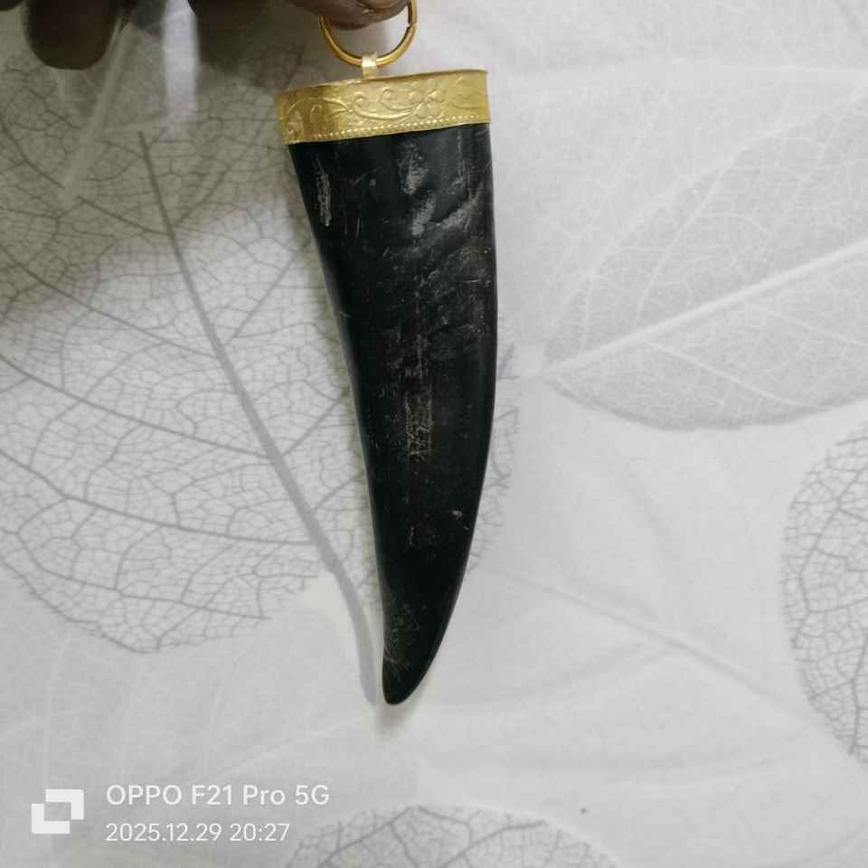 จี้หินดำธรรมชาติพร้อมห่วงทองเหลือง งานแกะสลักรูปปีศาจแบบชนเผ่า รูปทรงฟัน เป็นเครื่องประดับที่เป็นมิตรกับสิ่งแวดล้อม สำหรับทำสร้อยคอ