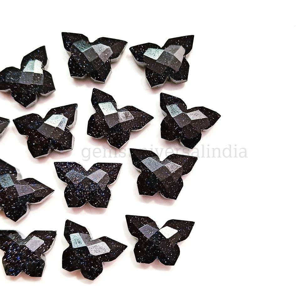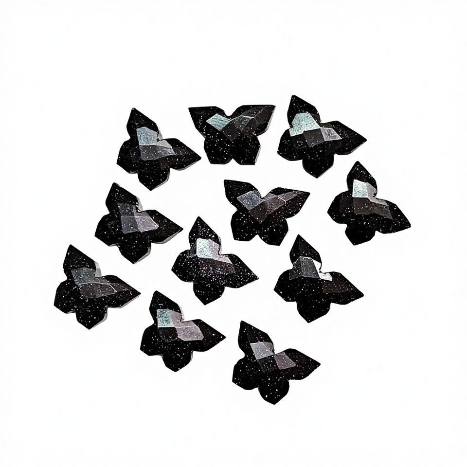 จี้หินซันสโตนสีดำธรรมชาติรูปผีเสื้อแกะสลักด้วยมือ งานแกะสลักหินซันสโตนสำหรับทำเครื่องประดับ ขายส่งจำนวนมาก