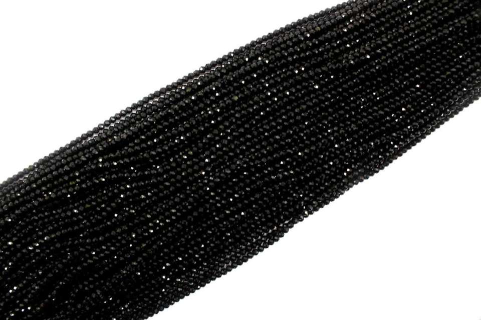 ลูกปัดหินทัวร์มาลีนสีดำธรรมชาติ เกรด AAA ขนาด 3 มม. รูปทรงรอนเดลล์ ความยาว 13 นิ้ว แบบเจียระไน สำหรับทำเครื่องประดับสร้อยคอ