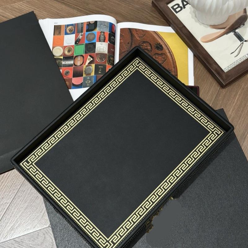 ถาดชาไม้สีดำธรรมชาติ ดีไซน์เรียบง่ายทันสมัย ทนทาน ใช้งานได้หลากหลาย เหมาะสำหรับใช้ในครัวเรือน พร้อมตัวอักษร