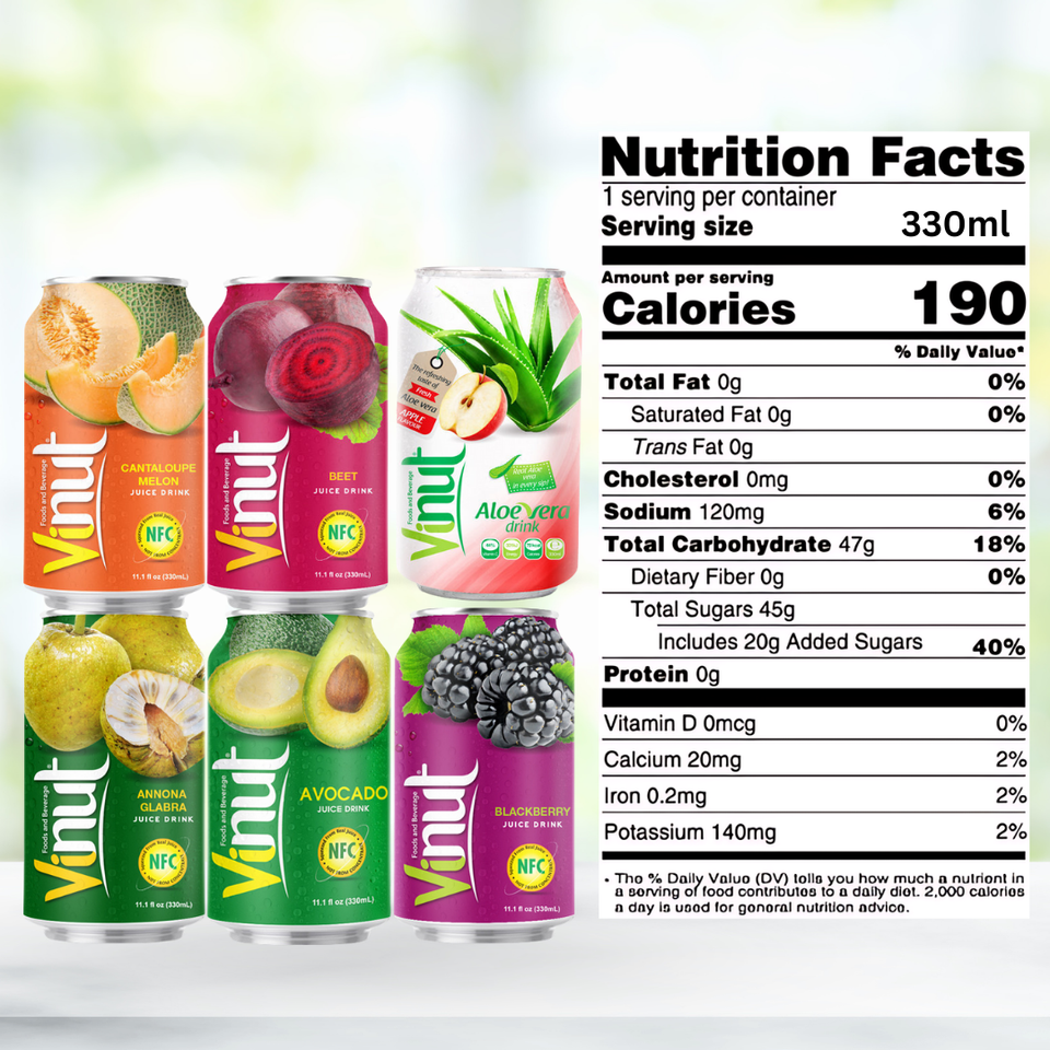 ชื่อผลิตภัณฑ์:เครื่องดื่มน้ำผลไม้330มล. (11.1 floz) vinut โรงงานเวียดนาม