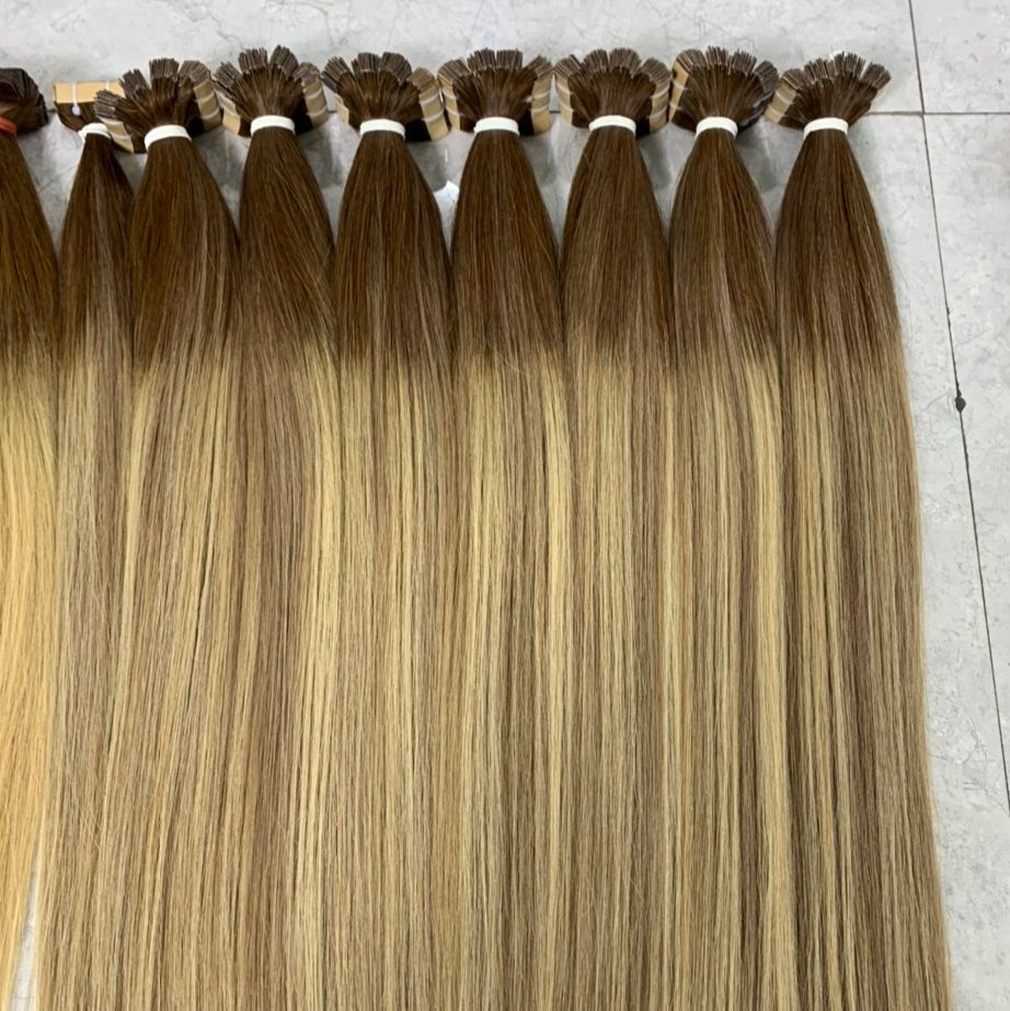 ชุดต่อผมเรมี่สีน้ำตาลผมบลอนด์ธรรมชาติทำจากหนังแท้เครื่องทำผมแบบเวียดนามพร้อมเทปสองชั้นผม100กรัม