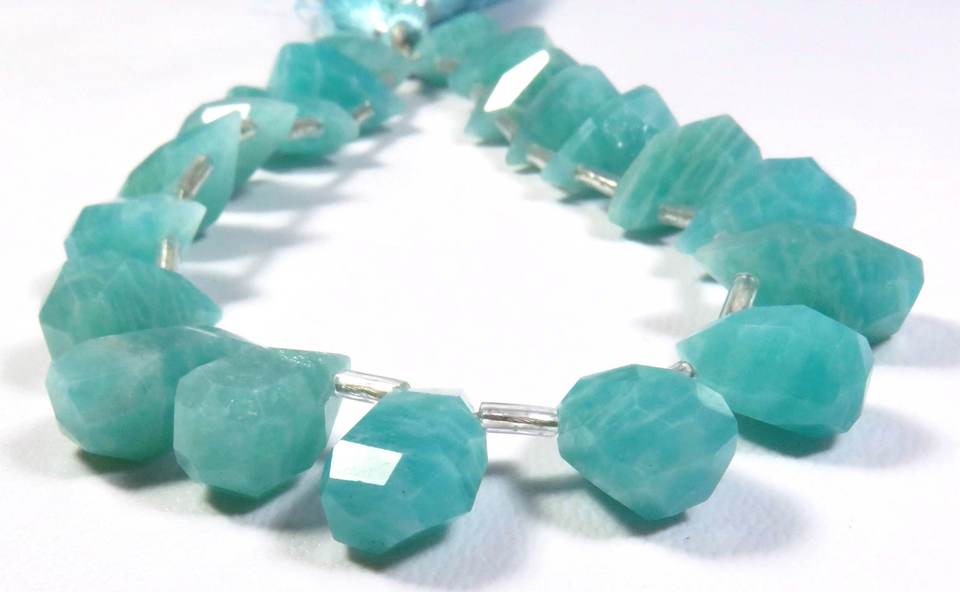 ลูกปัดอะเมโซไนต์สีน้ำเงินธรรมชาติคุณภาพสูง 8 เส้น รูปทรงหยดน้ำ ขนาด 13-15.5 มม. แบบเจียระไนเหลี่ยม คริสตัลพลอยหลวม
