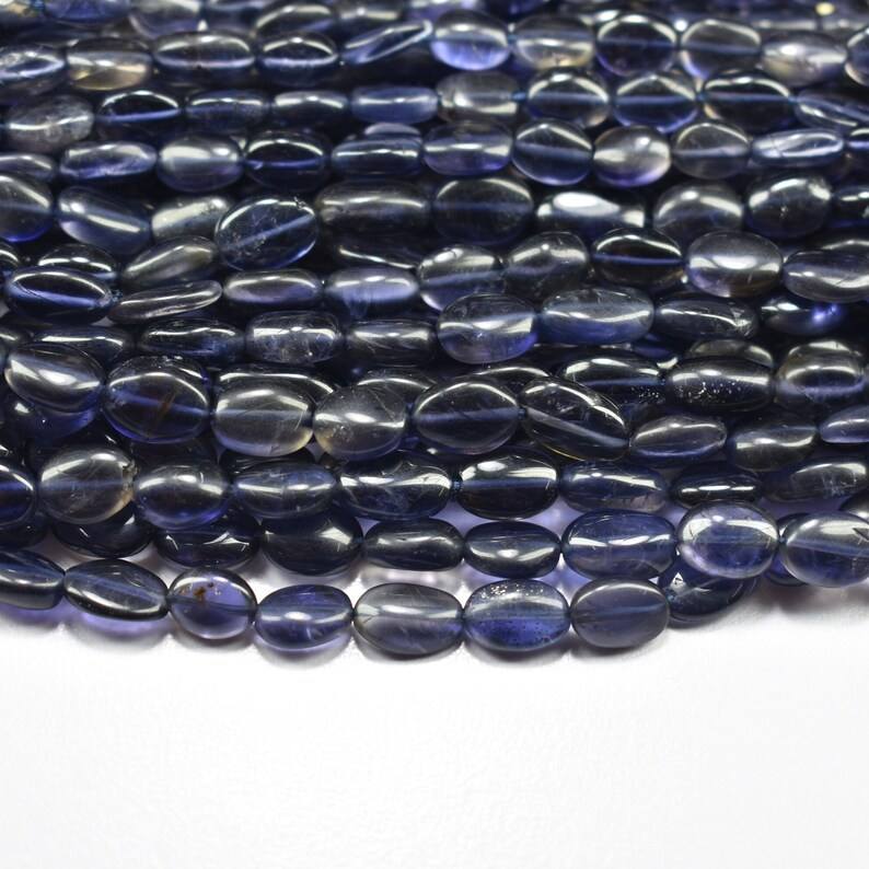 ลูกปัดพลอยอะพาไทต์สีฟ้าธรรมชาติรูปไข่เรียบลูกปัดอัญมณีทรงหลวม6-8มม. สำหรับทำเครื่องประดับในราคาพิเศษ
