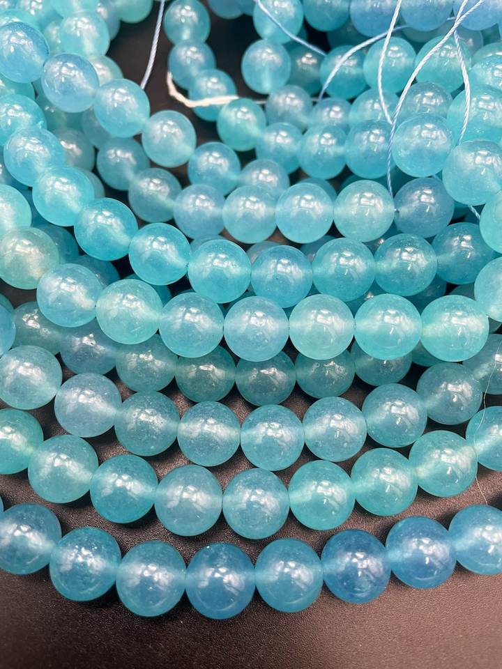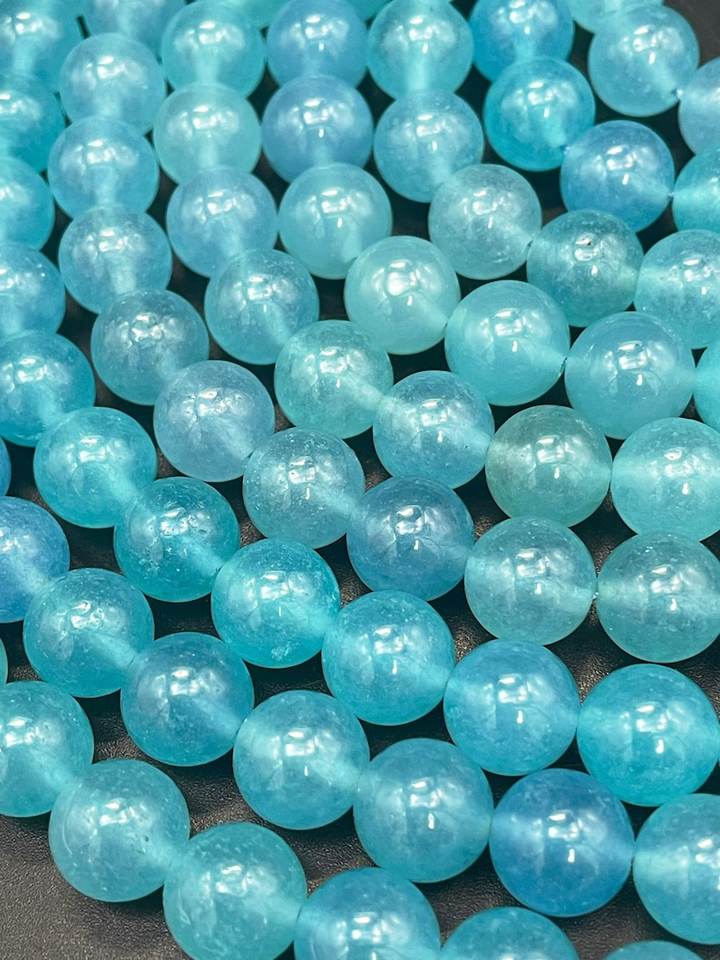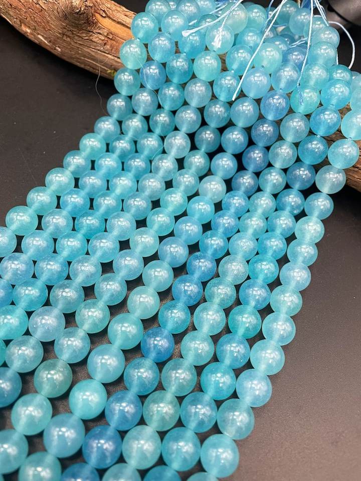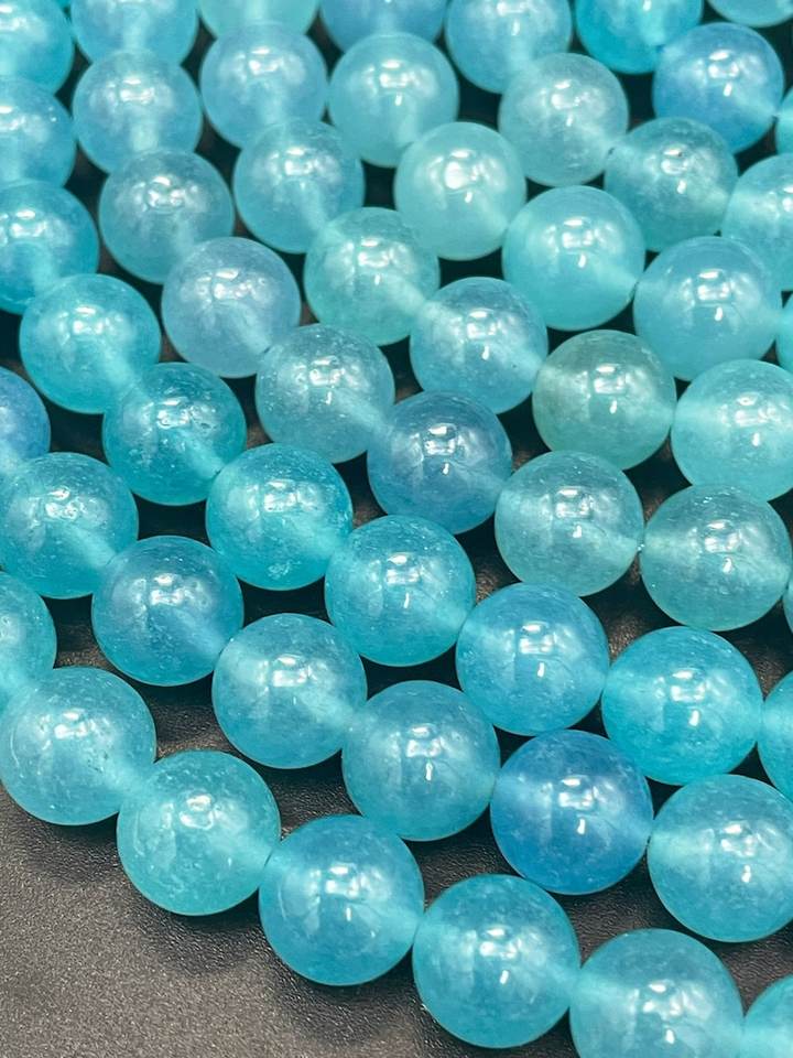 ลูกปัดหินควอตซ์อะความารีนสีน้ำเงินธรรมชาติทรงกลม สวยงาม สีฟ้าทะเล คุณภาพสูง สำหรับทำเครื่องประดับ