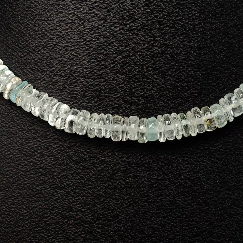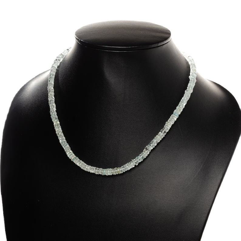 สร้อยคอลูกปัดพลอยสีฟ้าสีฟ้าอความารีนล้อเรียบ