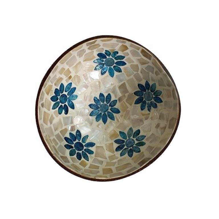 ชุดถ้วยชามชามมะพร้าวจากเวียดนามชามสีฟ้าธรรมชาติเป็นมิตรต่อสิ่งแวดล้อม