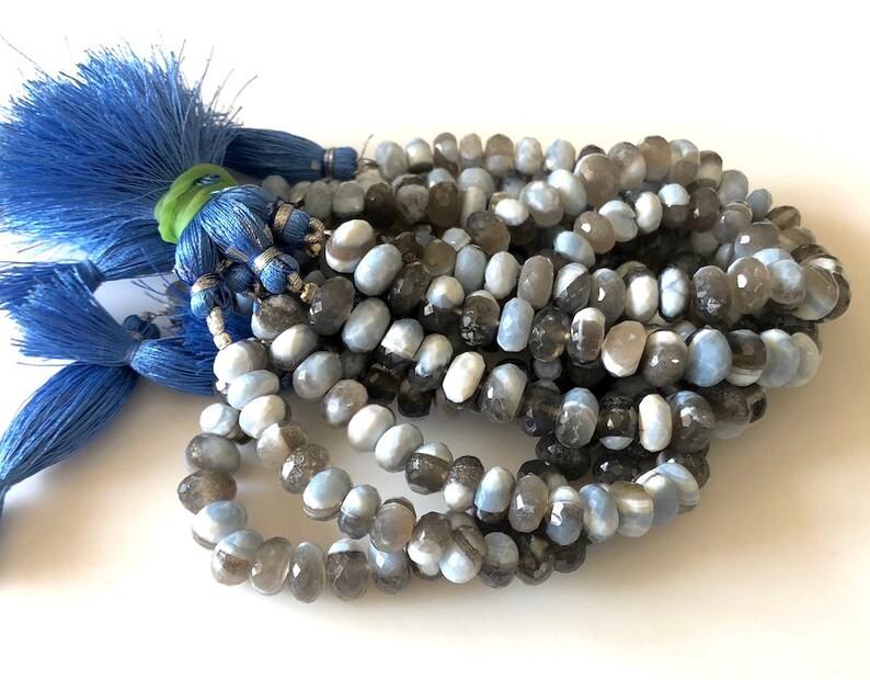 ลูกปัดโอปอลสีน้ำเงินธรรมชาติแบบสองสีทรงรอนเดลล์เจียระไนสำหรับทำเครื่องประดับแบบเส้น