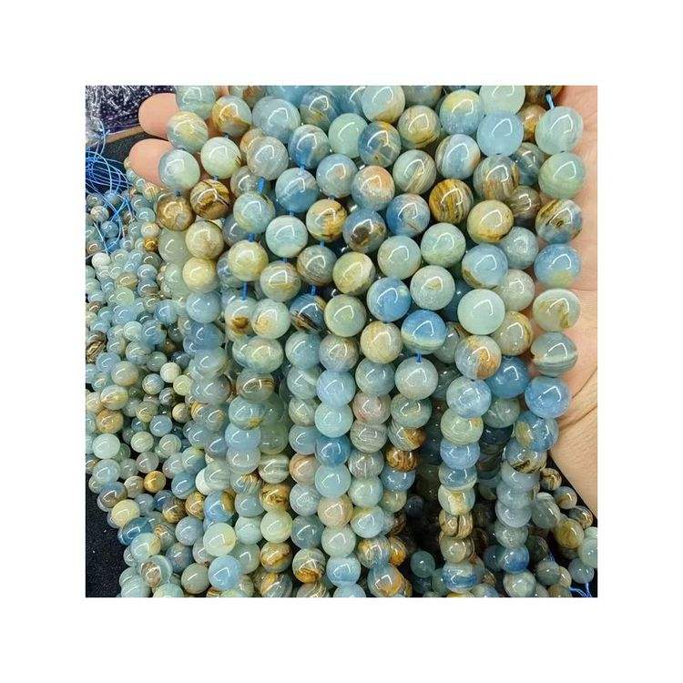 ลูกปัดหินแคลไซต์สีน้ำเงินธรรมชาติลูกปัดแคลไซต์สีฟ้าสายหลวมสำหรับทำเครื่องประดับ