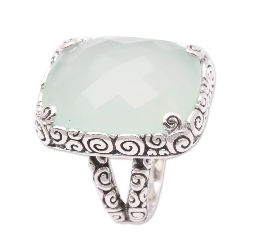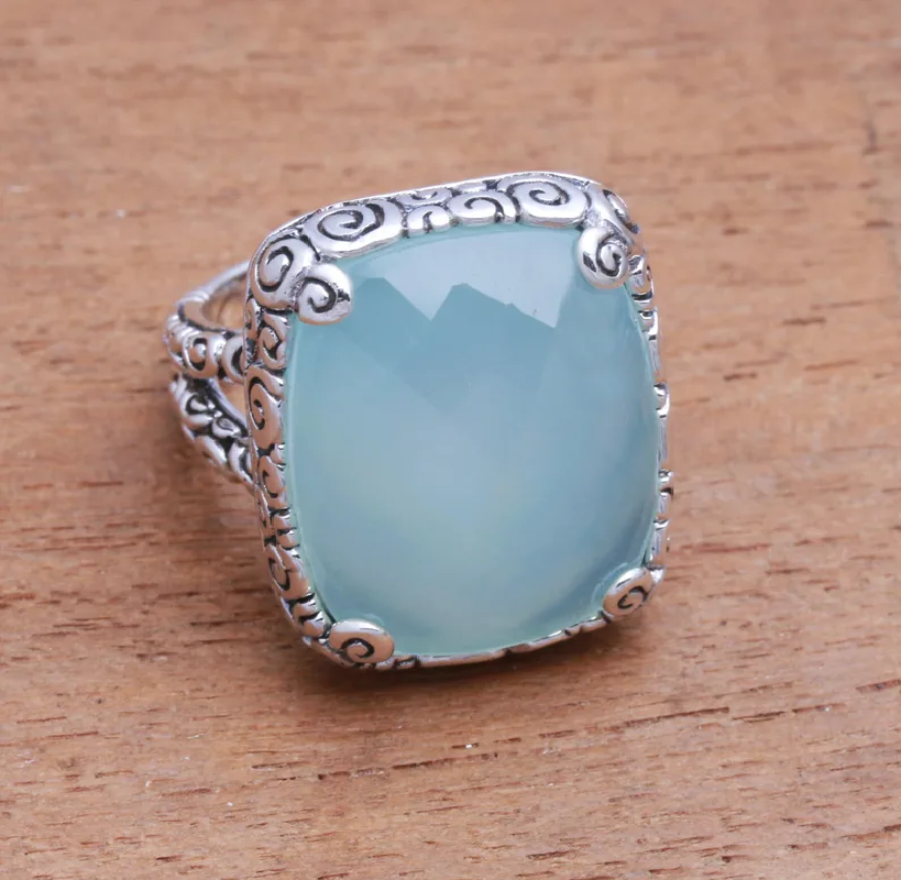 พลอยคาลซิโดนีสีฟ้าธรรมชาติสุดพิเศษ925เงินแท้เครื่องประดับชั้นดีสำหรับงานเลี้ยงวันเกิดขายส่งราคา