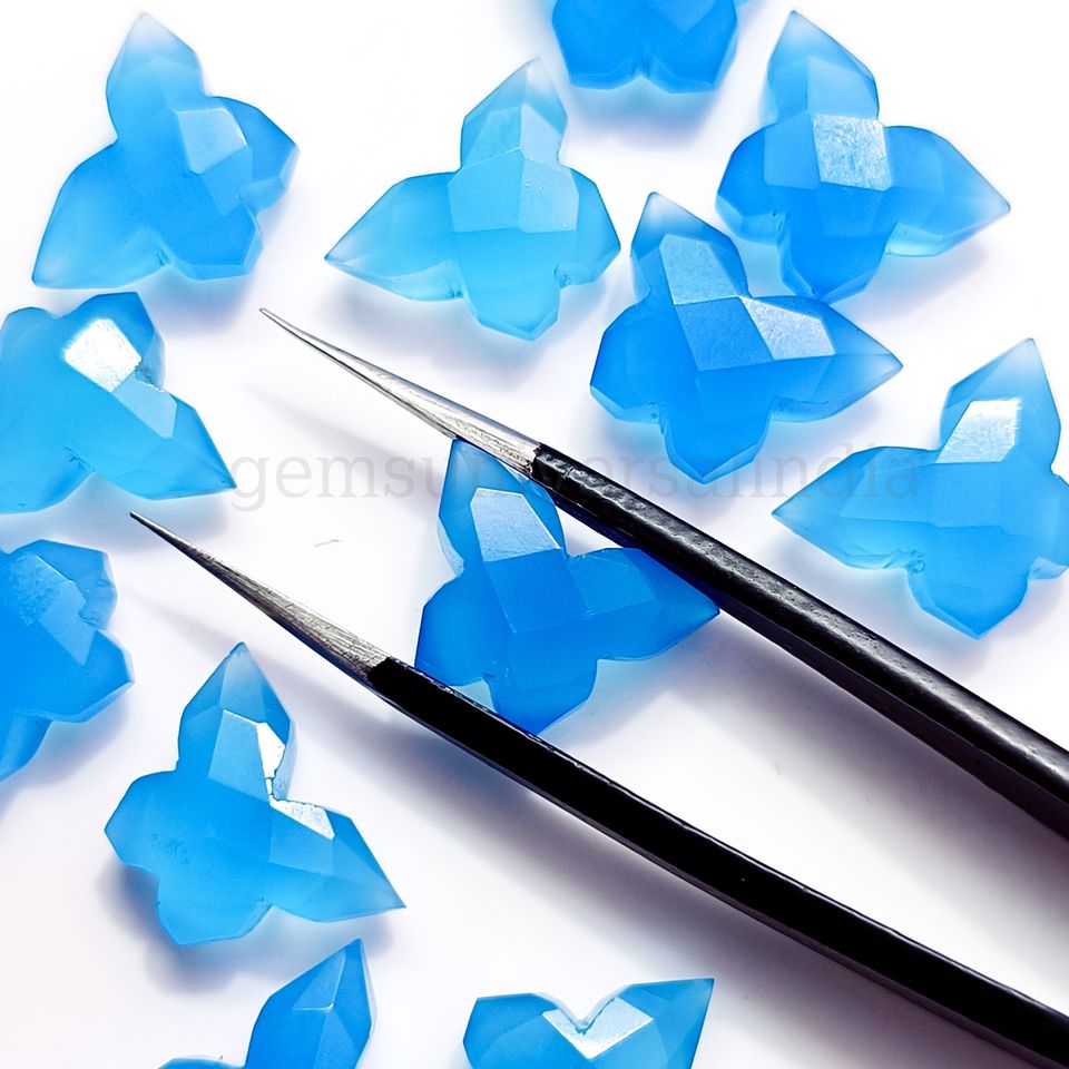 Product nameemstone Beads:Natural Blue Chalcedony Butterfly Shape Carving Gemstone Beads