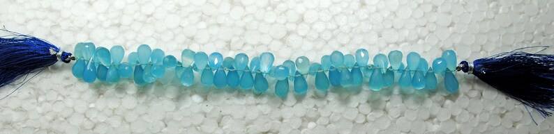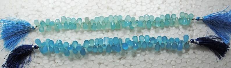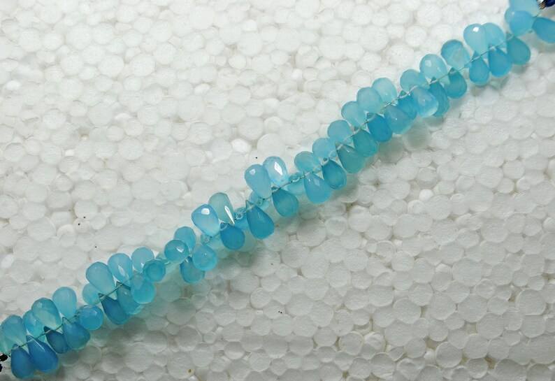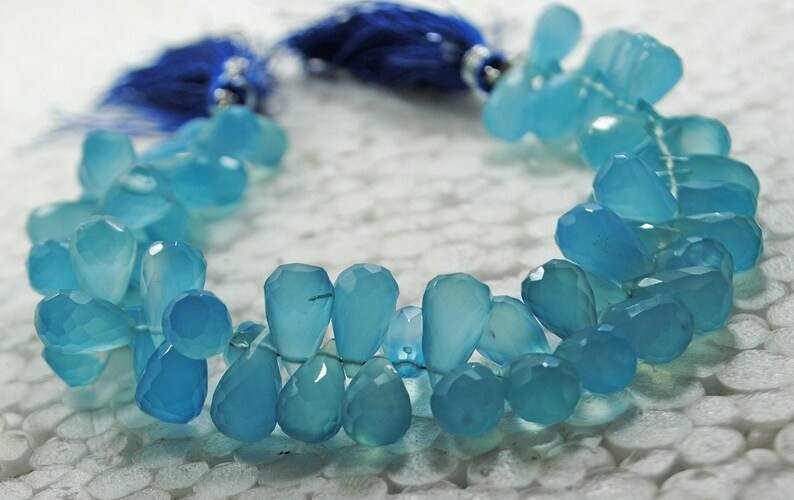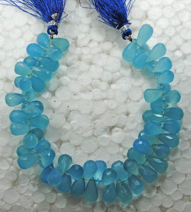 ลูกปัดหินแคลเซโดนีสีน้ำเงินธรรมชาติทรงหยดน้ำเจียระไน สำหรับทำเครื่องประดับ ขายส่ง