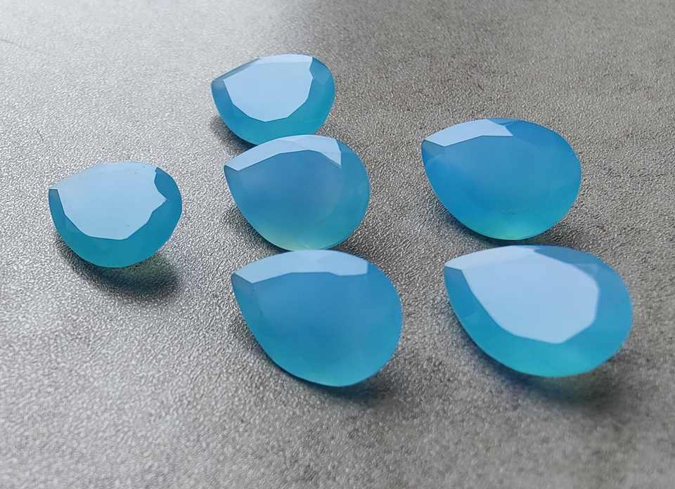 พลอยคาลซิโดนีธรรมชาติสีฟ้าแบบหลวมรูปร่างลูกแพร์3x5-10x12mm อินเดียและลูกชายอัญมณีทำเครื่องประดับร่วม