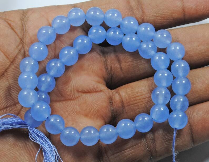ลูกปัดหินแคลเซโดนีสีน้ำเงินธรรมชาติทรงกลมเรียบ สำหรับทำเครื่องประดับ ขายส่ง