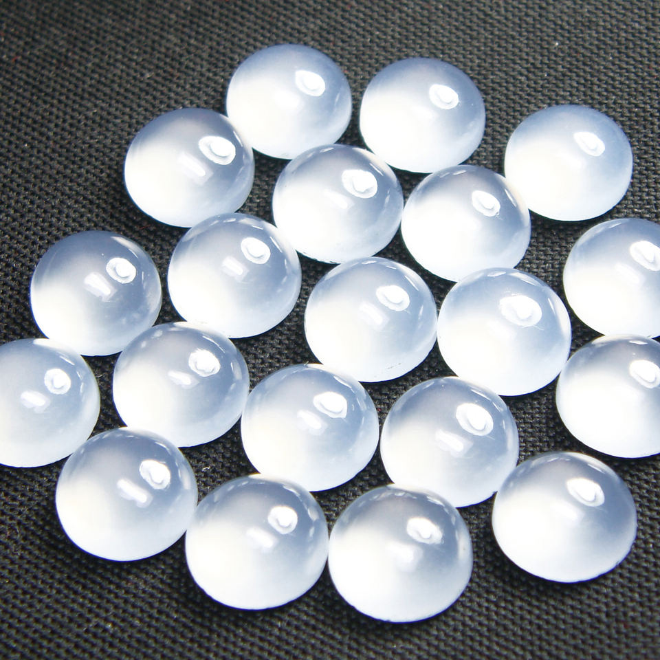 หินคาลซิโดนีธรรมชาติสีฟ้าอัญมณีหลวมรูปทรงกลมเรียบมีค่าทรงหลวมจากผู้ค้าส่งและผู้ผลิตอินเดียจำนวนมาก