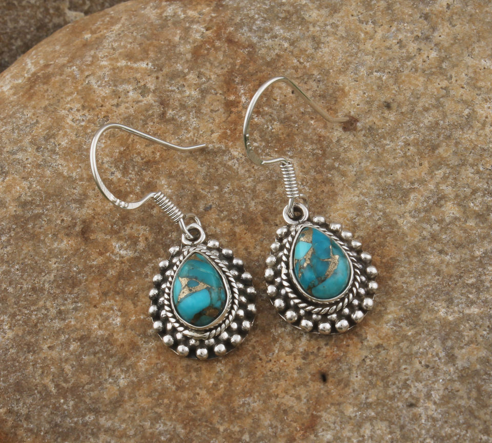 ต่างหูทรงหยดน้ำประดับด้วยเทอร์ควอยซ์สีน้ำเงินธรรมชาติ ประดับด้วยเงินแท้ 925 งานฝีมือ ประดับด้วยพลอย สำหรับผู้หญิง สไตล์โบฮีเมียน เหมาะสำหรับงานปาร์ตี้