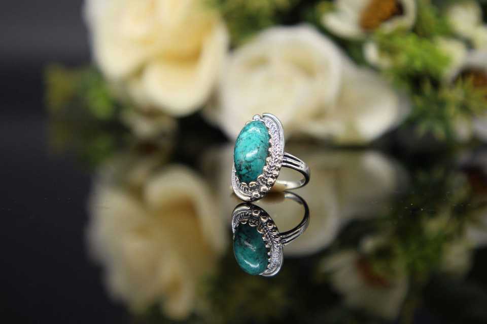 แหวนพลอยเทอร์ควอยซ์สีน้ำเงินธรรมชาติ ทำด้วยมือ เงินแท้ 925 เครื่องประดับเรียบง่าย คลาสสิก แหวนพลอยธรรมชาติสำหรับผู้หญิง