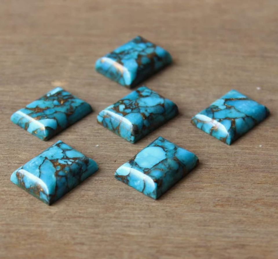 ทองแดงสีฟ้าธรรมชาติเทอร์ควอยซ์รูปสี่เหลี่ยมผืนผ้าเรียบอัญมณี Cabochon สําหรับเครื่องประดับทําคุณภาพสูงรูปสี่เหลี่ยมผืนผ้าอัญมณีหลวม
