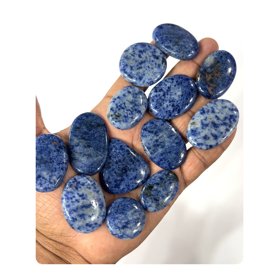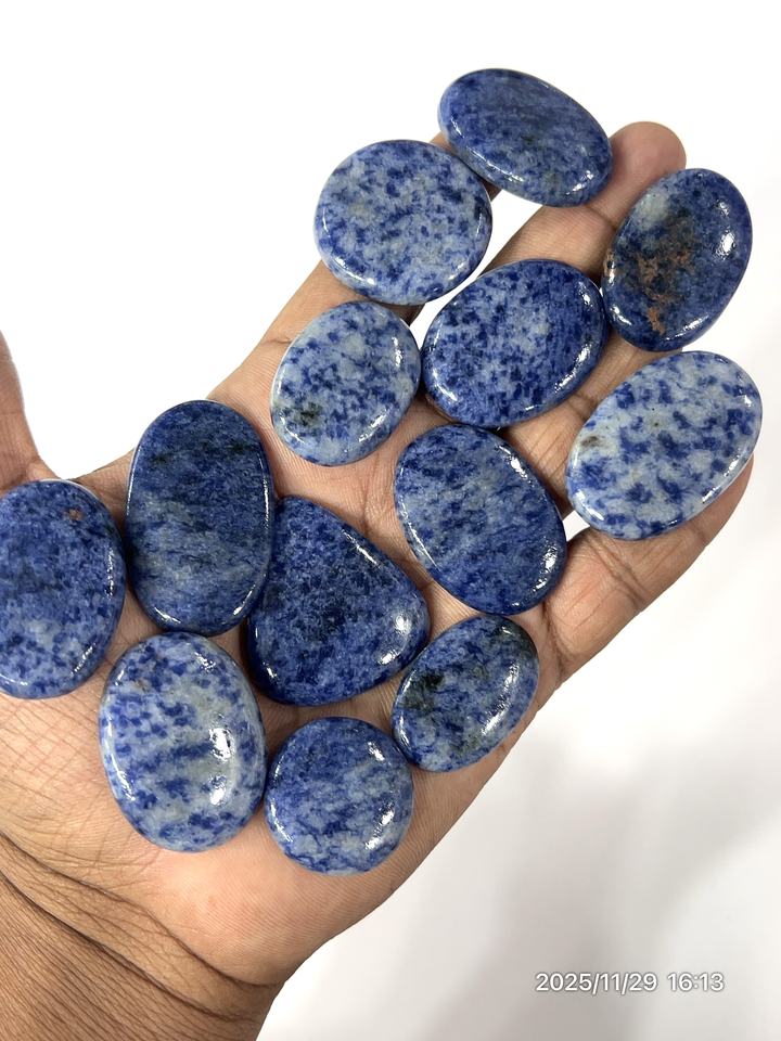 พลอยแจสเปอร์สีน้ำเงินธรรมชาติทรงหลวมแบบคาโบชอง รูปทรงและขนาดคละ ประมาณ 20 ถึง 30 มม.