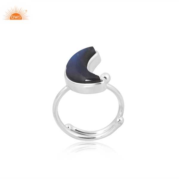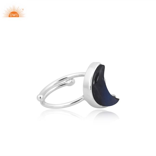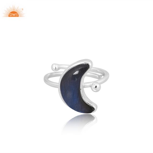 เครื่องประดับเงินแท้ 925 รูปพระจันทร์ ประดับลาบราโดไรต์สีฟ้าธรรมชาติ ผลิตด้วยมือ รับสั่งทำ