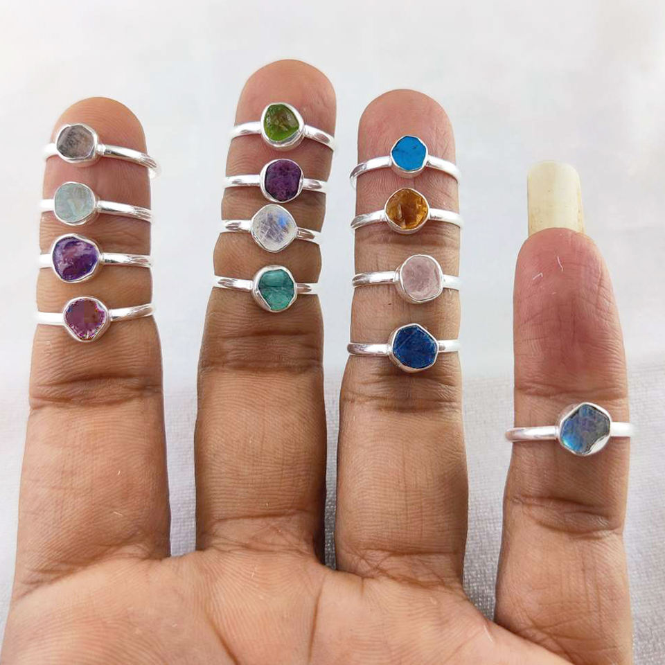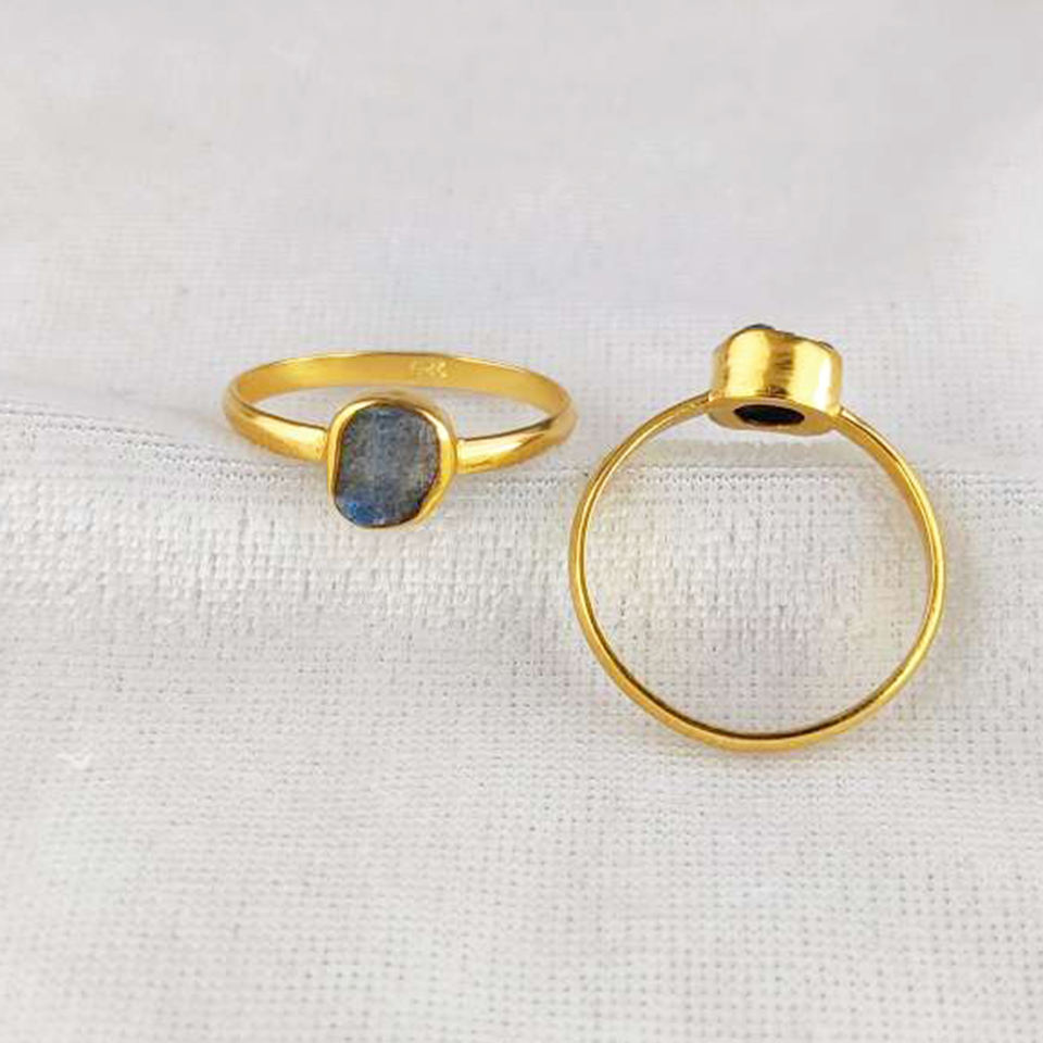 แหวนพลอยลาบราดอไรต์ธรรมชาติสีฟ้าใส925เงินสเตอริงชุดรวบรวมแหวนหิน-เครื่องประดับชั้นดีสำหรับผู้หญิง
