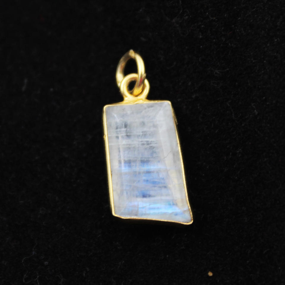 จี้พลอยมูนสโตนไฟสีน้ำเงินธรรมชาติอัญมณีชุบทองสำหรับทำสร้อยคอ