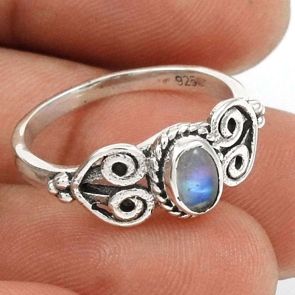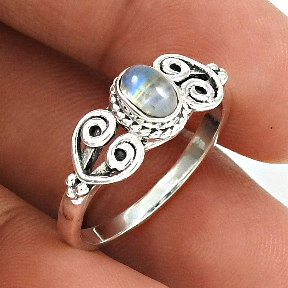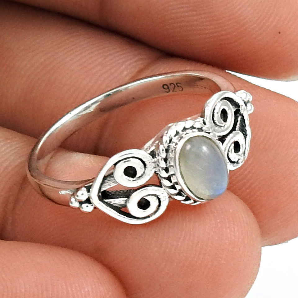 ธรรมชาติสีฟ้าไฟสายรุ้งมูนสโตน 925 เงินสเตอร์ลิงรูปไข่Artisanดูแหวนเครื่องประดับแฮนด์เมดราคาขายส่งซัพพลายเออร์